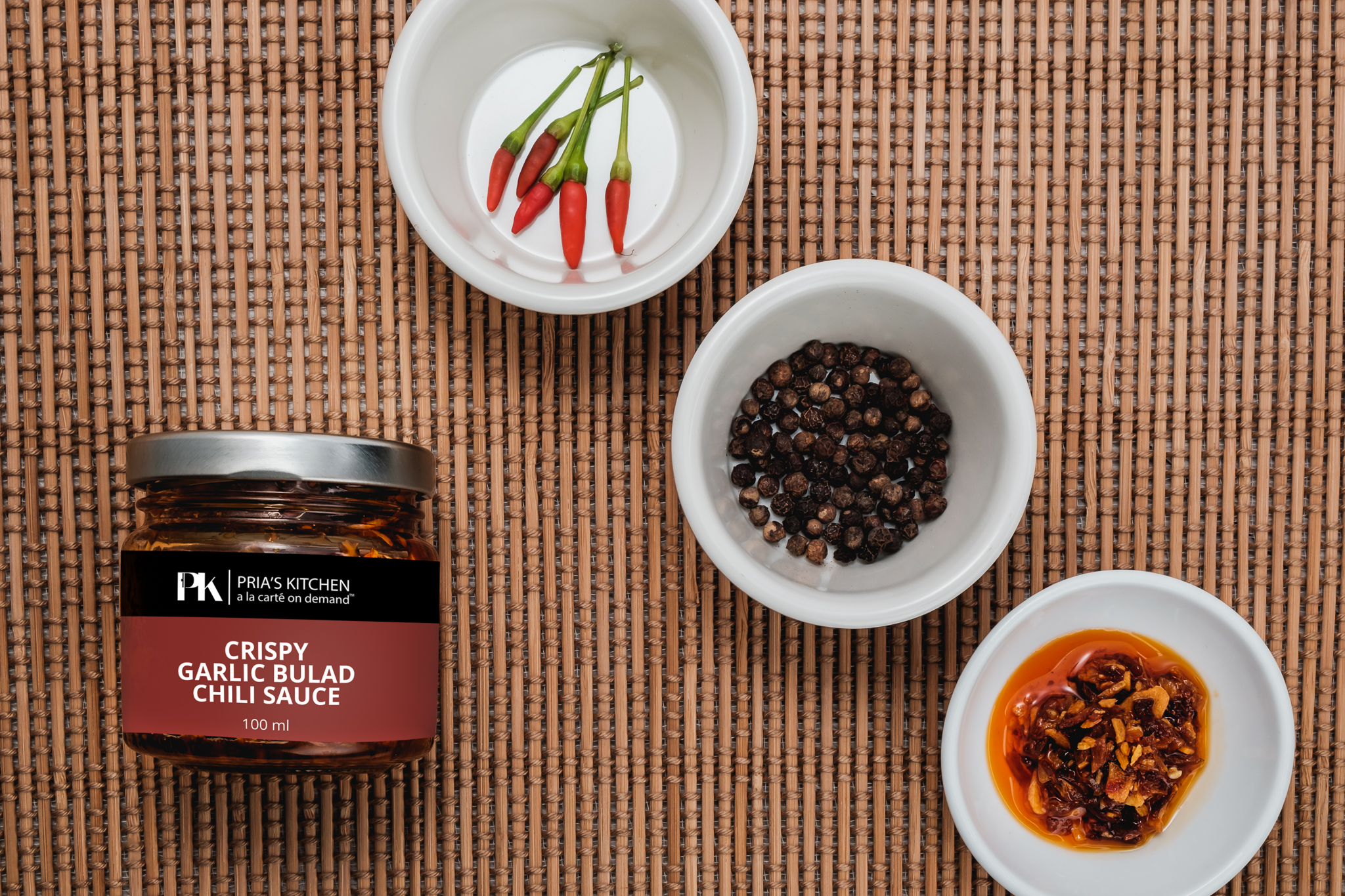 CRISPY BULAD CHILI SAUCE – For those that like a bit of heat, this is perfect on just about anything.Our no holds barred, JUMBO Pork and Shrimp Siomai. This goes perfectly with out Bulad Chili Sauce.